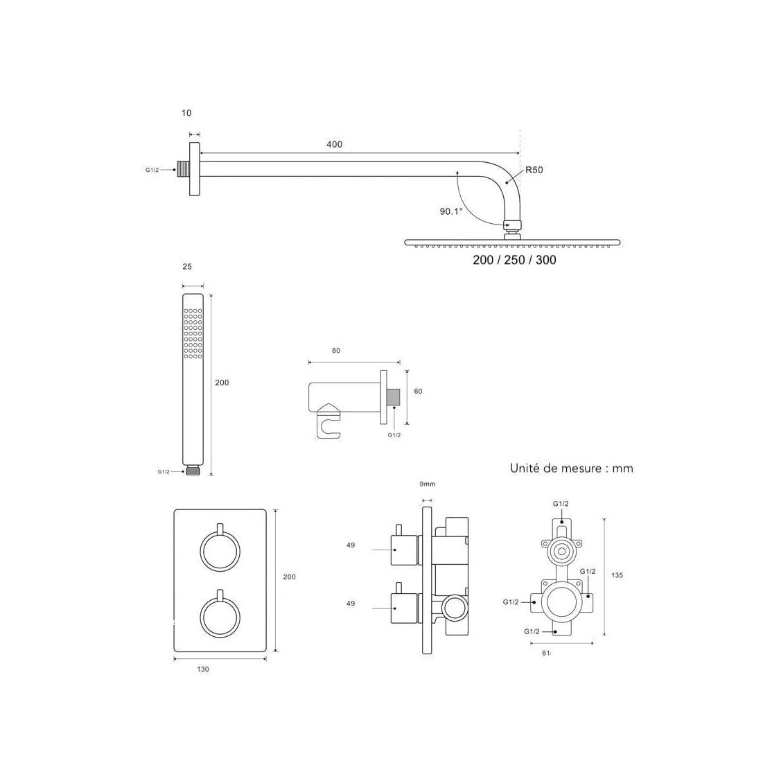 Transformez votre salle de bain en un espace luxueux et moderne grâce à cette colonne de douche haut de gamme. Composée d’un pommeau de douche effet pluie pour une expérience relaxante, d’une douchette élégante avec flexible et d’un mitigeur thermostatique encastré, elle combine design minimaliste et confort absolu.