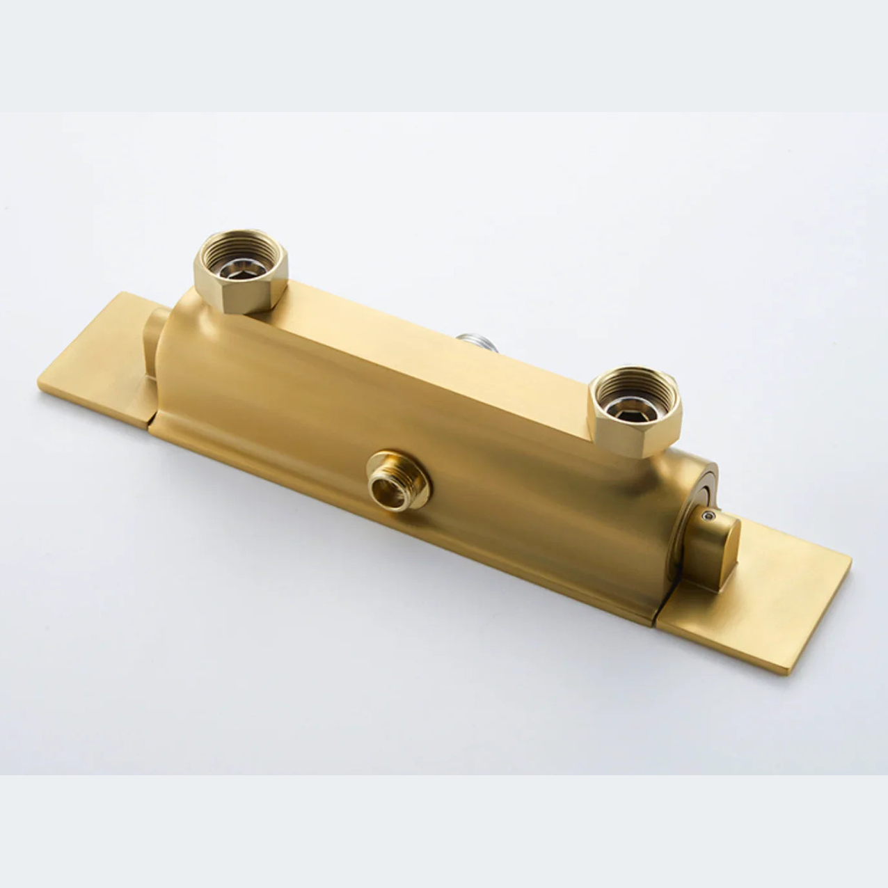 Harmonisez votre pièce d'eau en complétant cette colonne de douche thermostatique d'un robinet de lavabo, d'une bonde d'évacuation et d'un siphon de vidange finition or brossé.