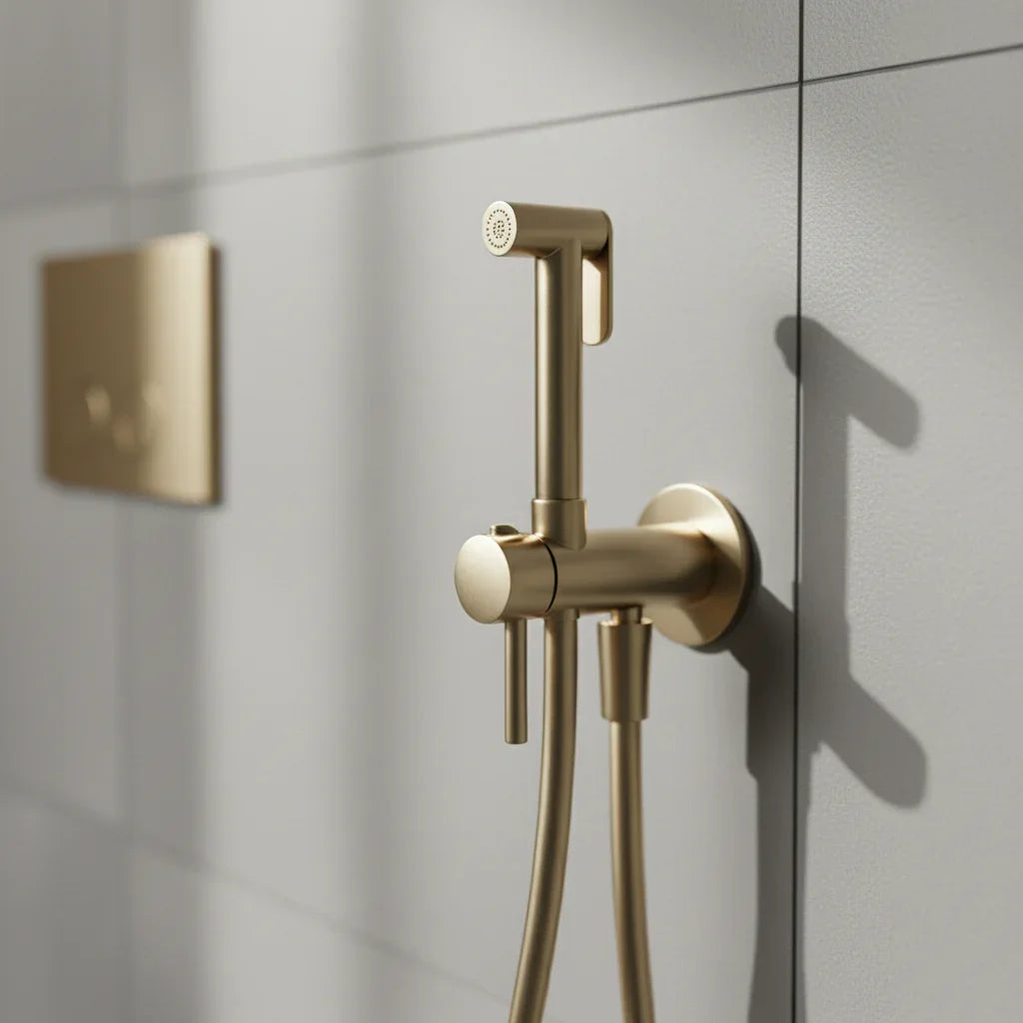 Douchette hygiénique or brossé – Élégance et praticité pour vos WC