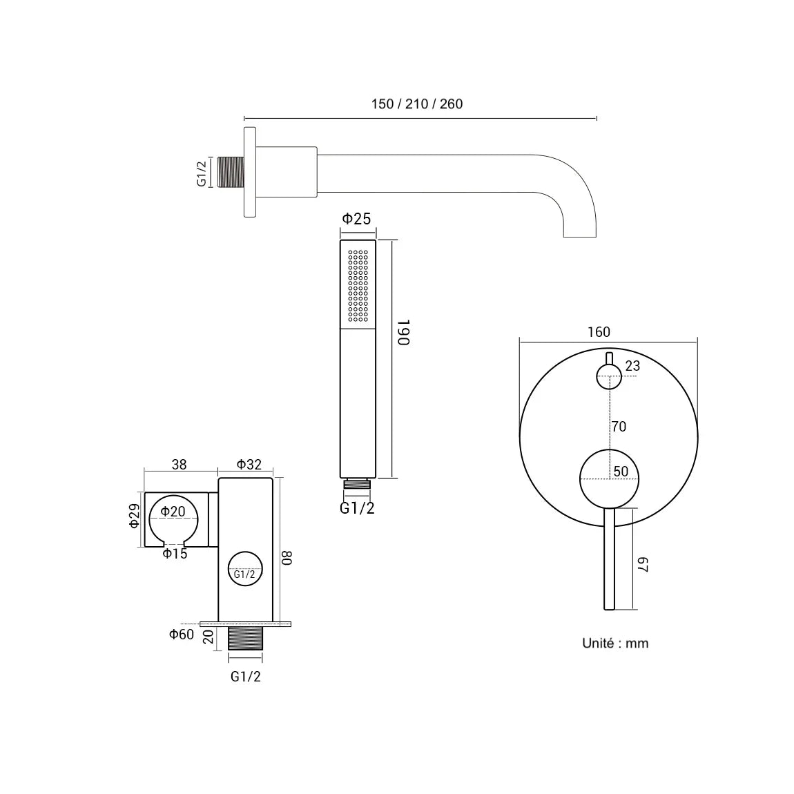 Harmonisez votre pièce d'eau en complétant cet ensemble de douche thermostatique d'un robinet de lavabo, d'une bonde d'évacuation et d'un siphon finition gris brossé.