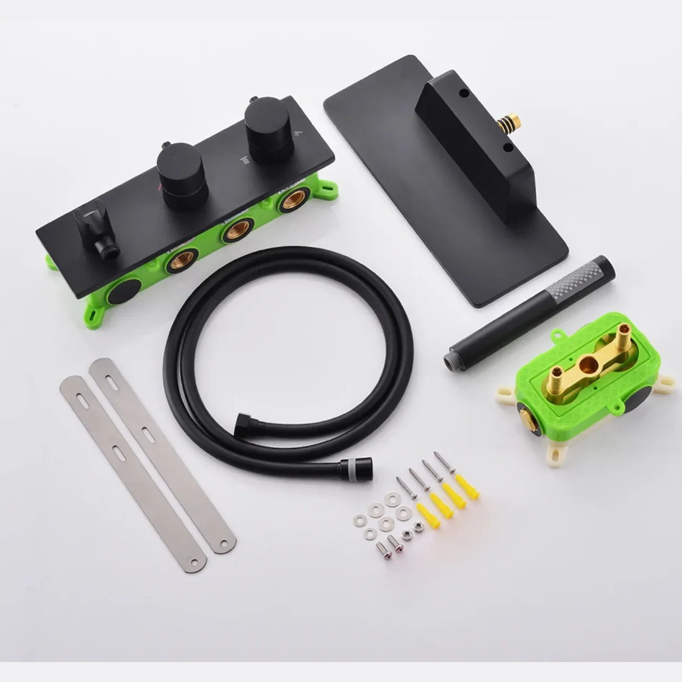 Les commandes murales ergonomiques assurent un contrôle précis de la température et du débit, garantissant confort et sécurité à chaque utilisation. Conçu en matériaux haut de gamme (laiton et inox), ce mitigeur est résistant à la corrosion et durable dans le temps, tout en restant simple à entretenir.