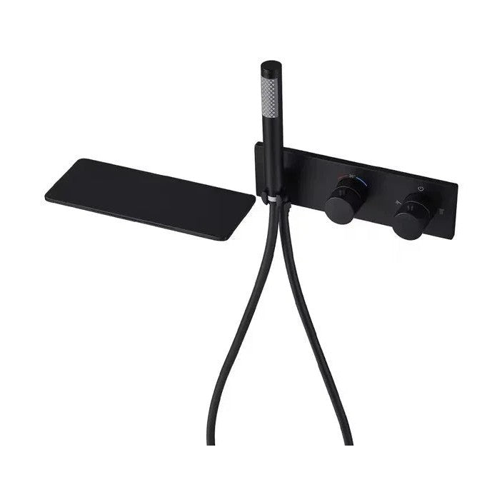 Mitigeur de Baignoire Thermostatique Encastré Noir Mate avec Bec Tablette – Design Minimaliste