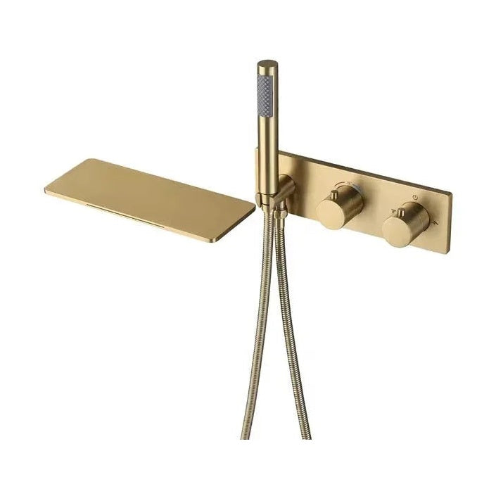 Mitigeur thermostatique de baignoire mural encastré doré brossé – Design moderne avec douchette intégrée
