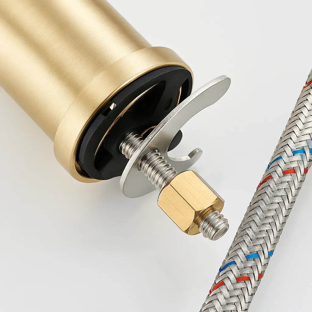 Apportez une touche de luxe intemporel à votre salle de bain avec ce robinet mitigeur de lavabo or brossé / doré au design minimaliste et raffiné. Conçu pour allier esthétique haut de gamme et fonctionnalité optimale, il deviendra la pièce maîtresse de votre espace.
