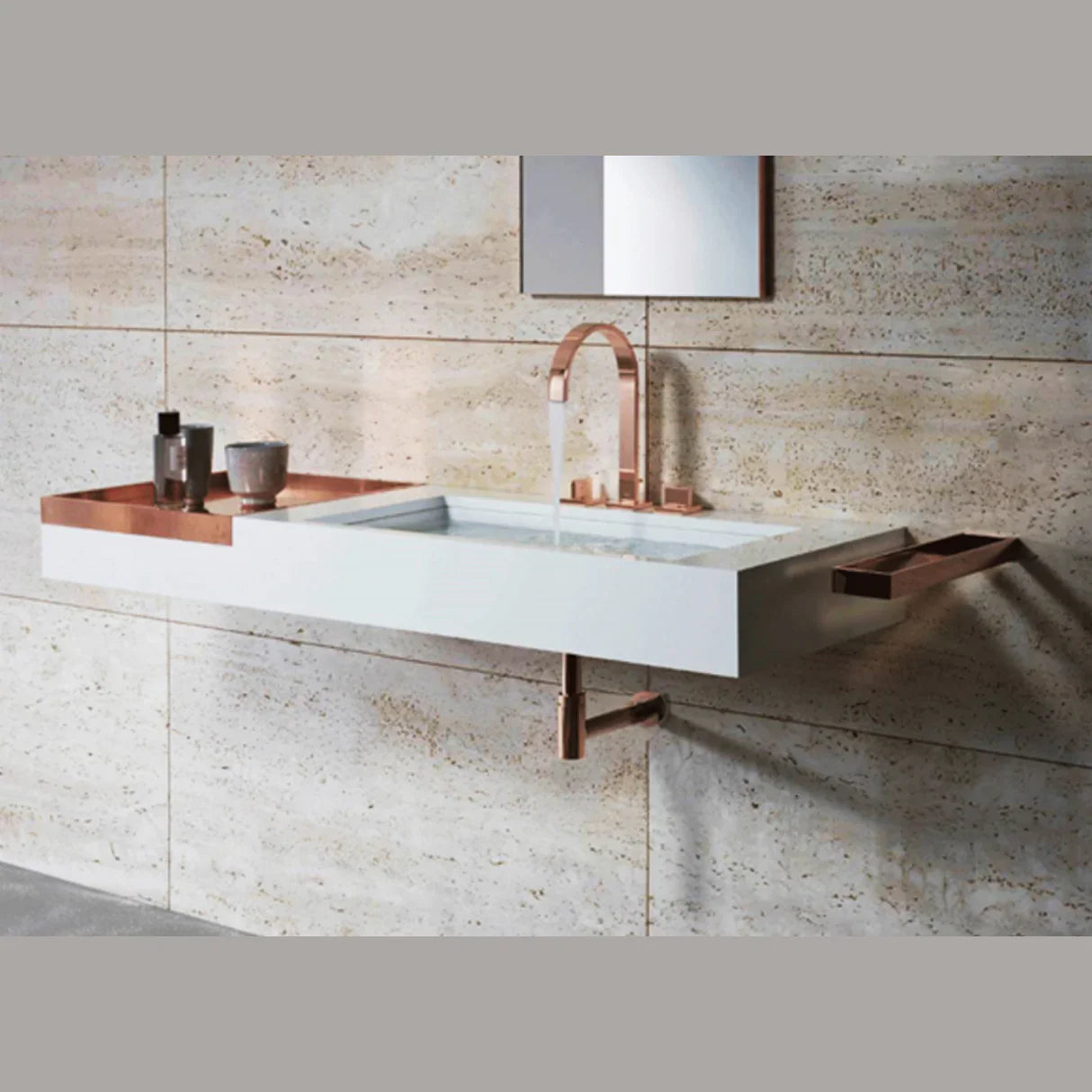 Harmonisez l'ensemble en associant ce siphon à une bonde et à un mitigeur finition or rose brossé sans oublier la colonne de douche.