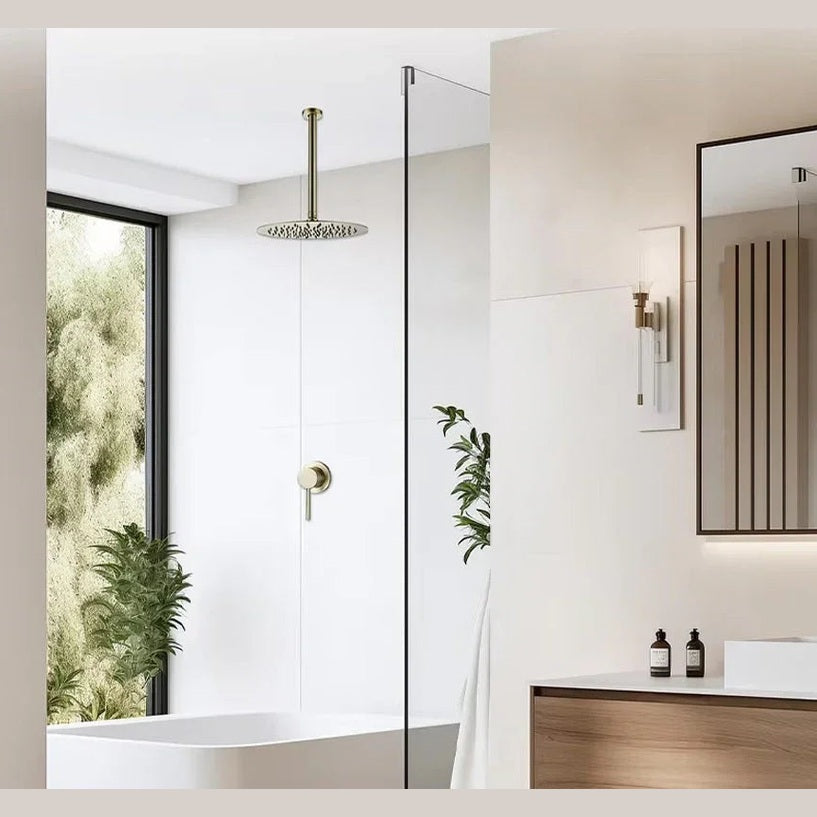 Plongez dans la sobriété ultime avec notre modèle "Sona", un kit de douche encastré épuré finition or brossé.