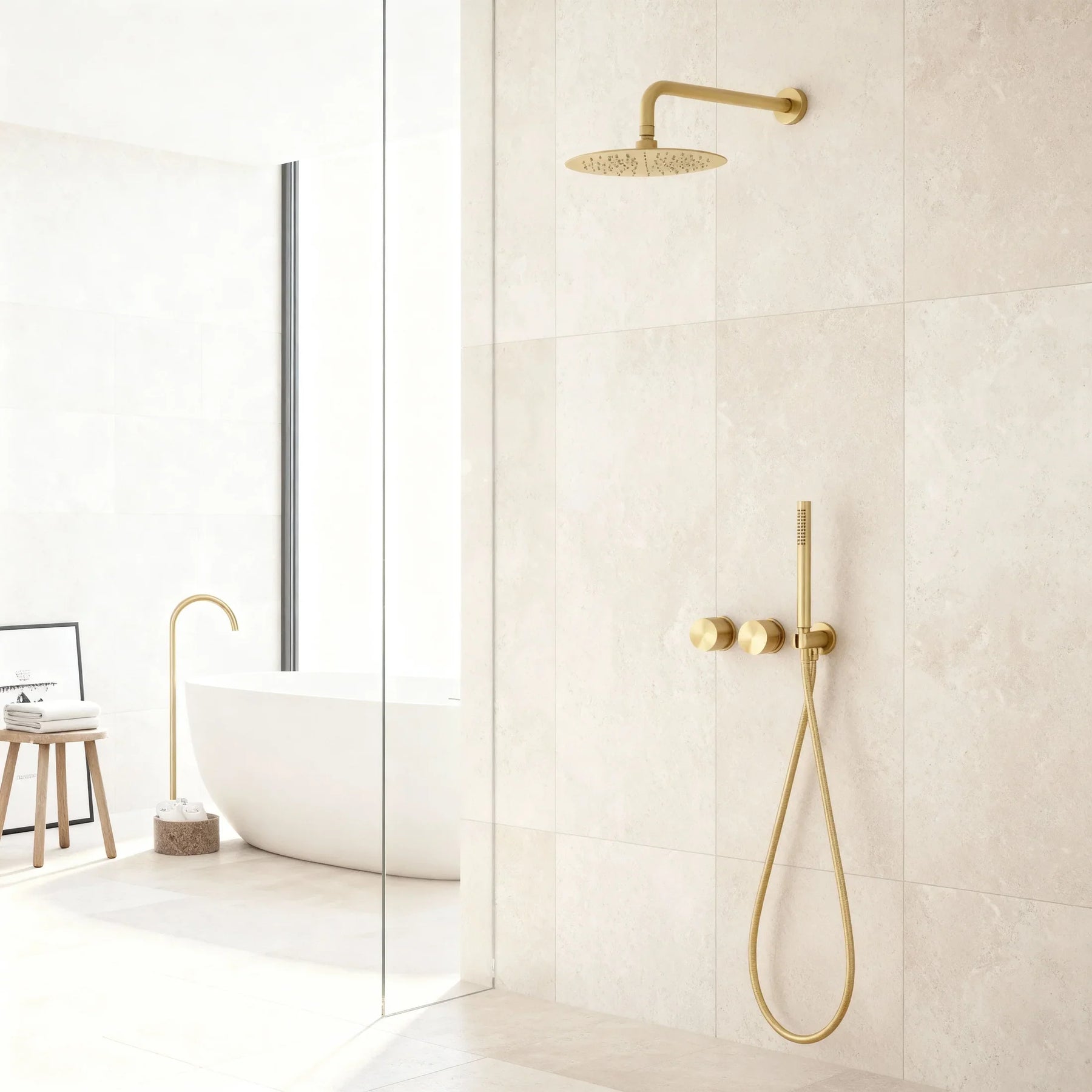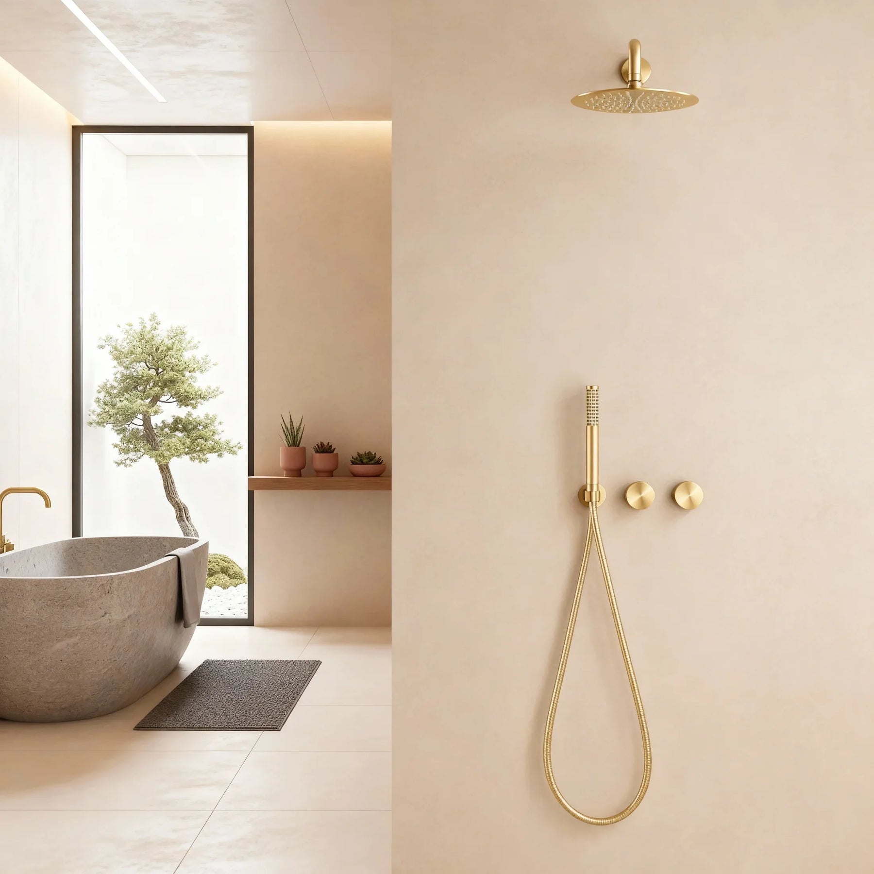Colonne de douche encastrée or brossé – Élégance minimaliste et bien-être absolue