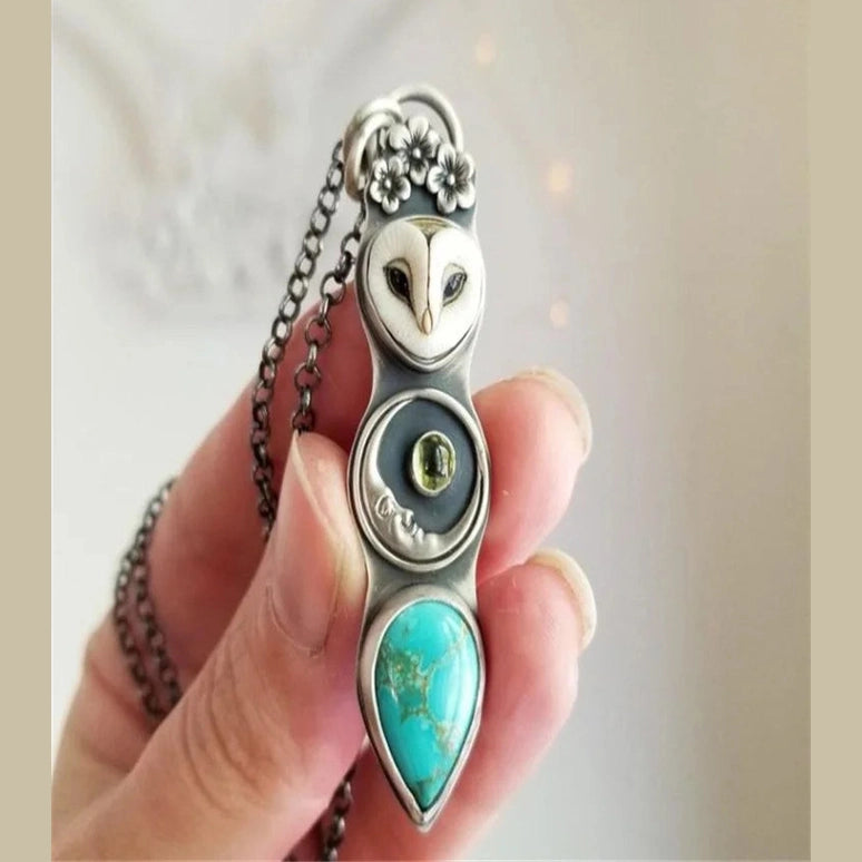 Collier Turquoise Owl Wisdom Bar