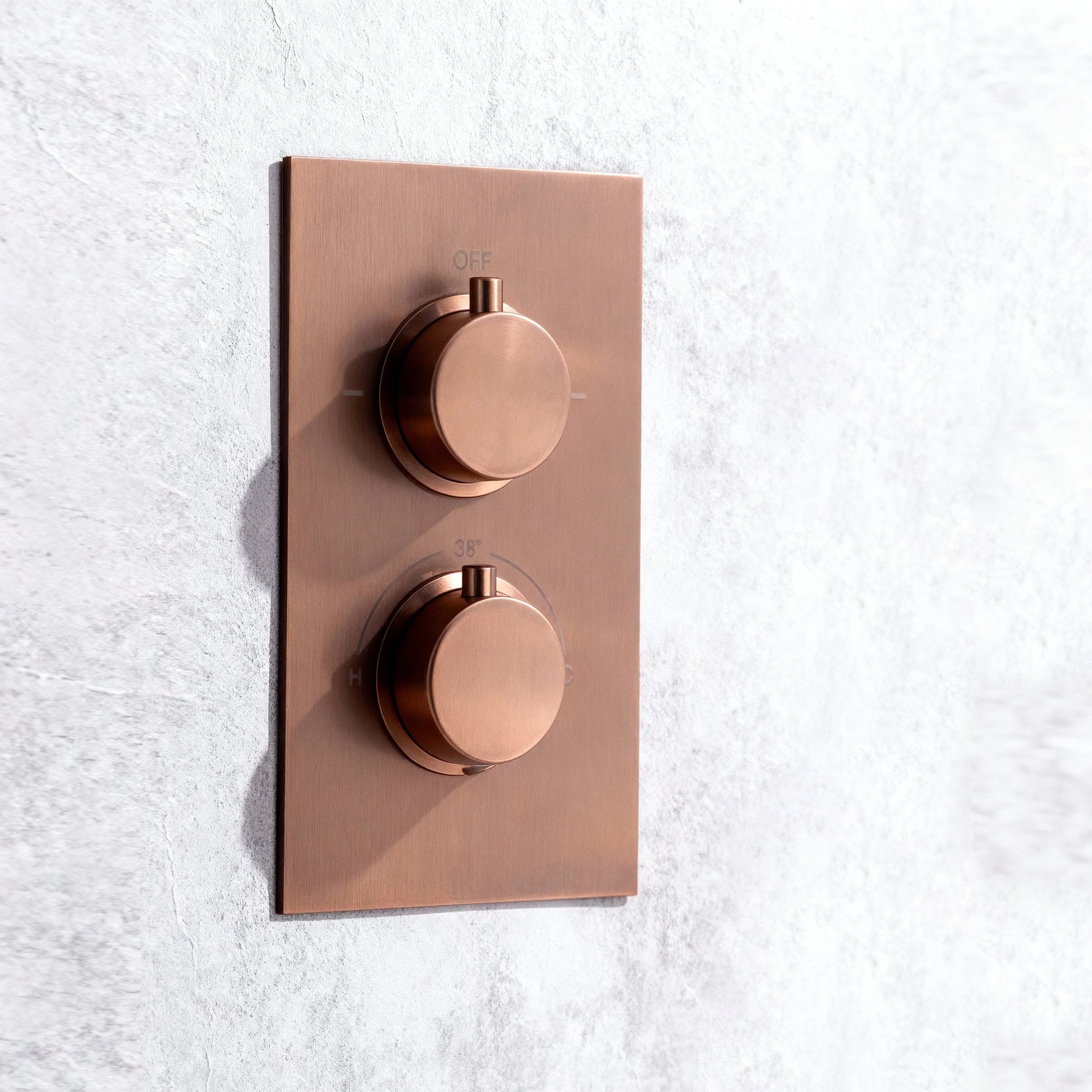Colonne de douche thermostatique encastrée finition or rose brossé