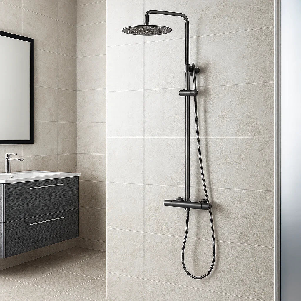 Apportez une touche d’élégance et de modernité à votre salle de bain avec cette colonne de douche thermostatique en finition gris brossé. Conçue pour allier style et performance, elle est équipée d’un mitigeur thermostatique assurant une température constante et sécurisée, pour un confort d’utilisation absolu.
