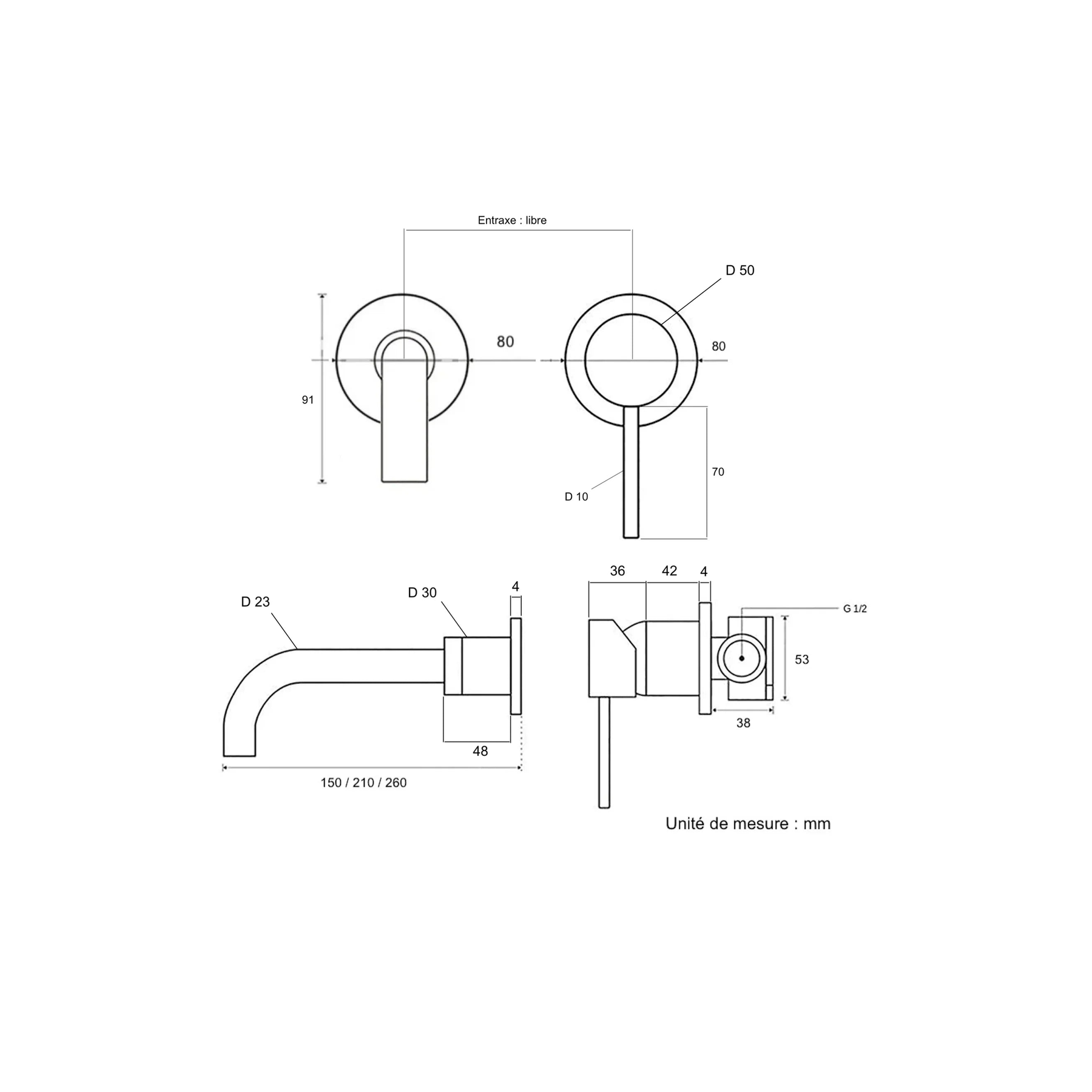 Conçu pour une installation murale, ce mitigeur libère l’espace sur le plan de toilette et crée une ambiance sobre, luxueuse et contemporaine. Fabriqué en matériaux de qualité supérieure, il assure une durabilité optimale, une résistance à la corrosion et un confort d’utilisation quotidien.