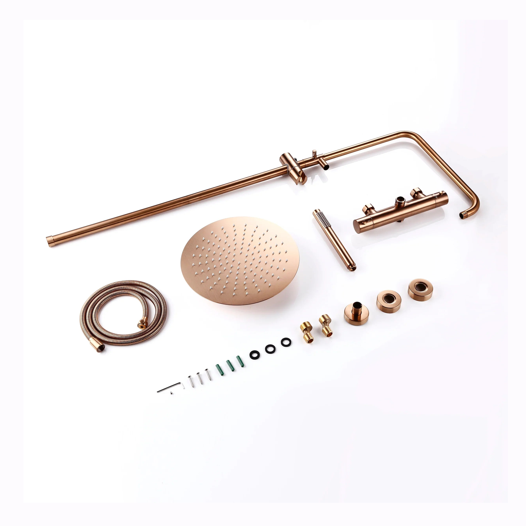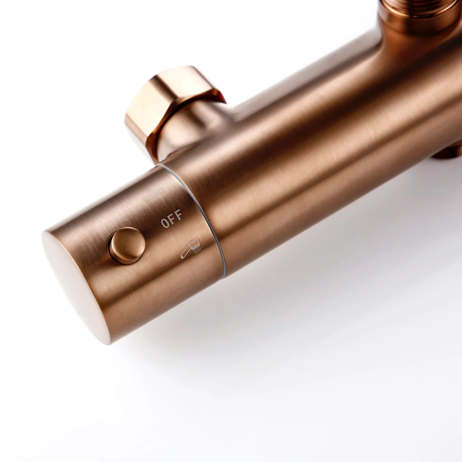 Sa finition en or rose brossé apporte une touche chaleureuse et raffinée, tout en résistant à l’humidité et à la corrosion. Grâce à son mitigeur thermostatique précis en laiton, la température de l’eau reste stable, garantissant une expérience de douche sûre et agréable.