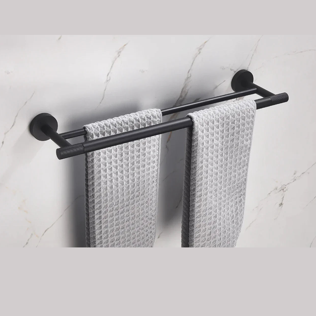 Double porte serviettes noir mate strié