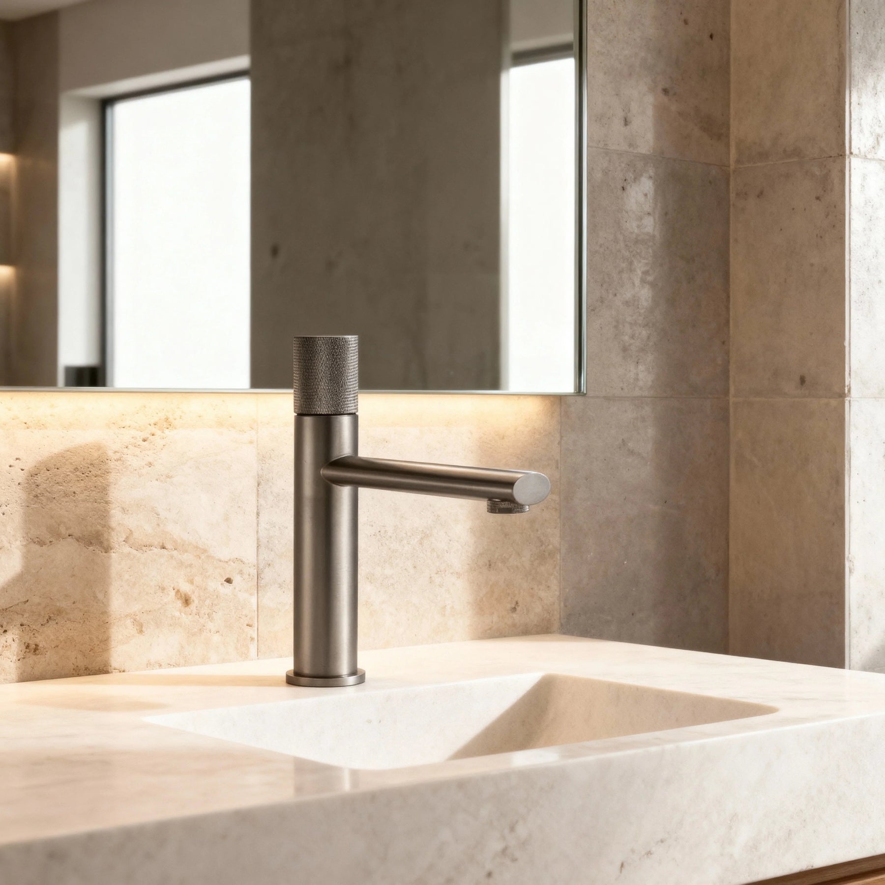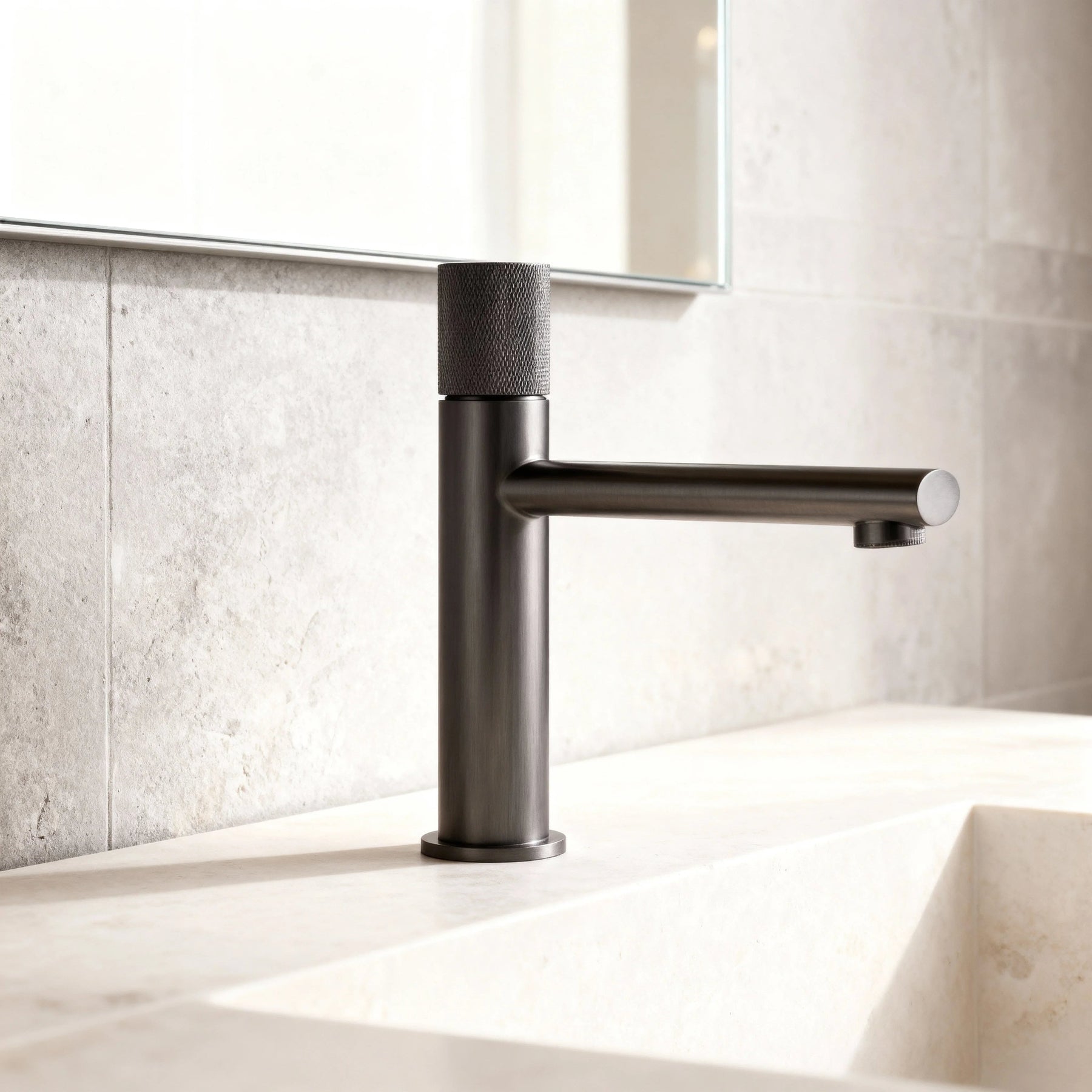 Le mitigeur se distingue par sa forme épurée et sa poignée moletée offrant une prise en main agréable et précise. Idéal pour une salle de bain moderne, zen ou industrielle, il s’intègre harmonieusement à tout type de vasque.