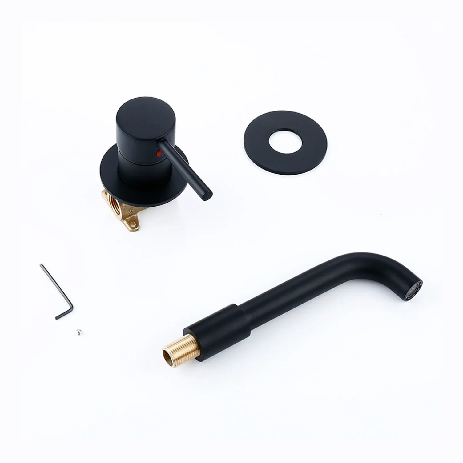 Grâce à son installation murale encastrée, ce robinet design permet de dégager l’espace autour du lavabo ou de la vasque pour un rendu épuré et pratique. La finition en noir mate confère une allure haut de gamme et tendance, résistante aux traces et facile d’entretien.