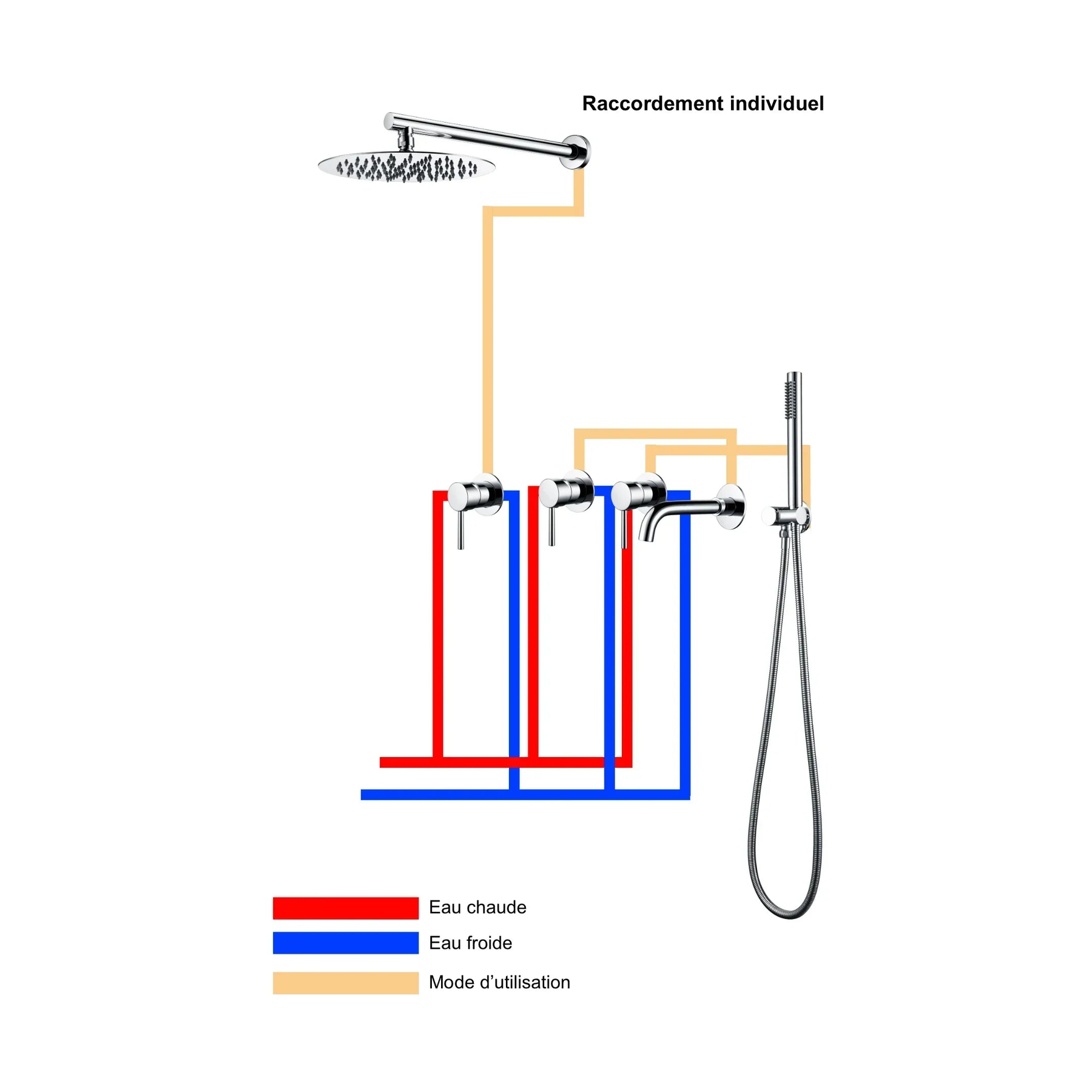 Permutez de la douchette au bec de bain et au ciel de douche à l'aide des différentes poignées mécaniques.
