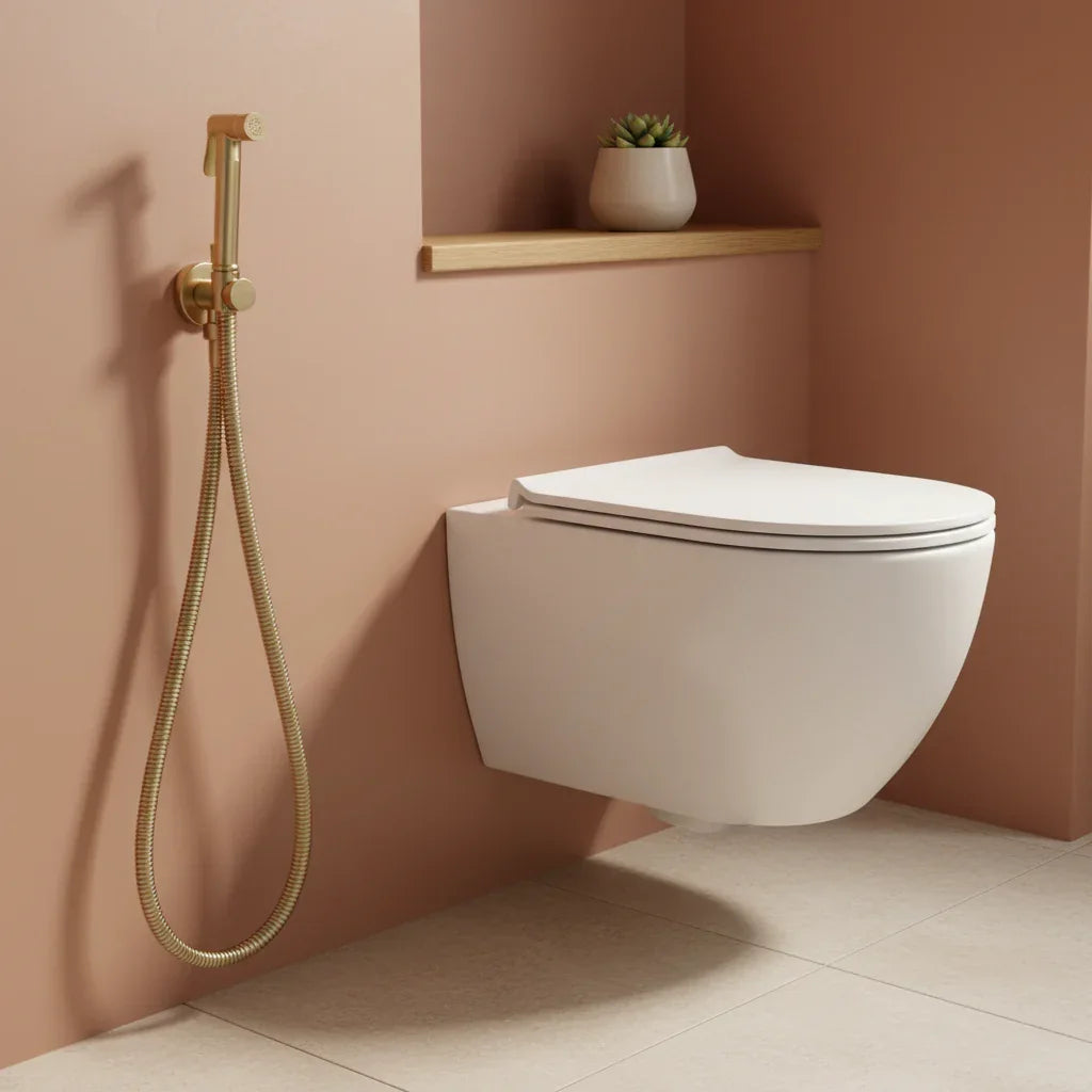 Élégante et pratique, la douchette hygiénique 1 voie (Eau froide seulement) en or brossé associe confort, hygiène et design. Conçue pour s’intégrer parfaitement dans les toilettes modernes, elle offre une solution discrète et esthétique pour l’hygiène intime ou le nettoyage quotidien.